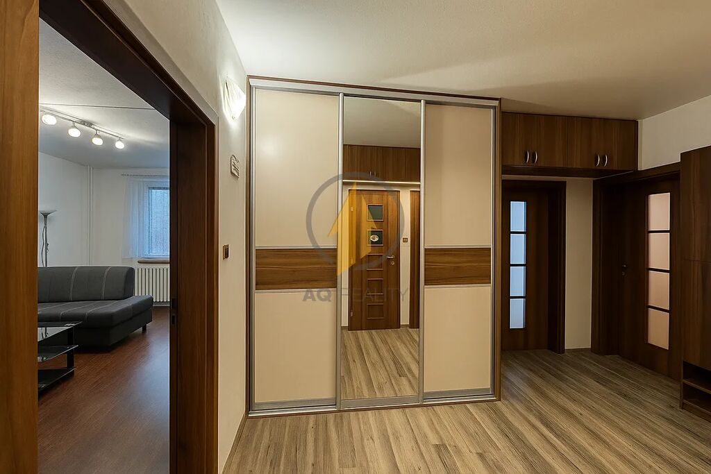 Velkým bonusem bytu jsou vestavěné skříně na míru, které nabízejí mimořádně velké množství úložného prostoru – na oblečení, sezónní věci i domácí potřeby.