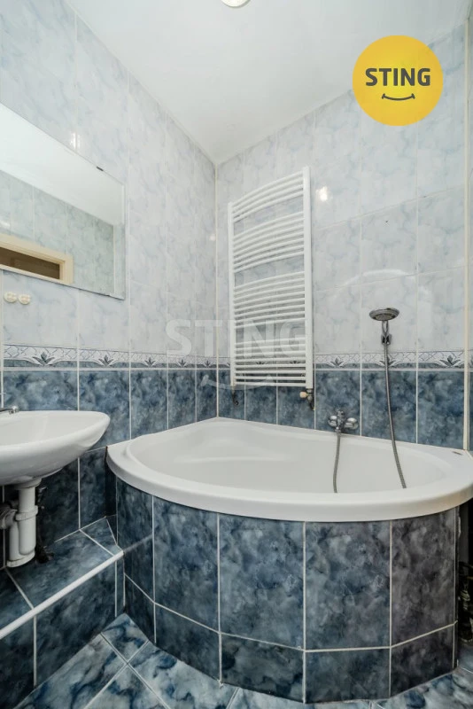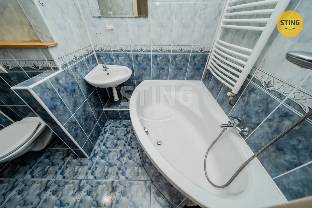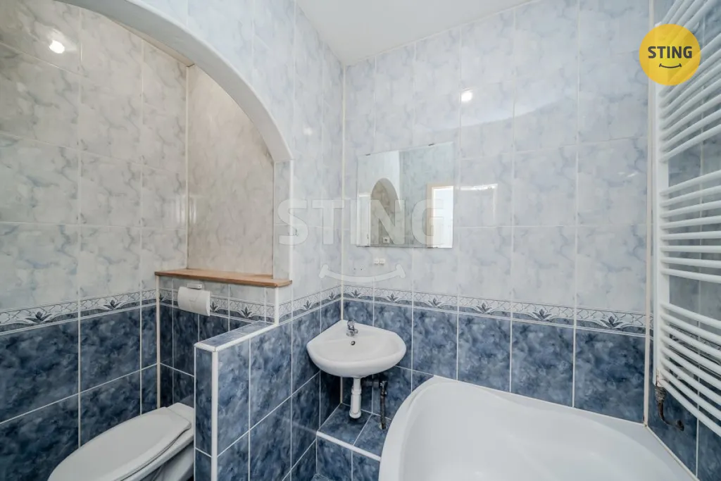 Zděné jádro: Koupelna s vanou a toaletou v udržovaném stavu.