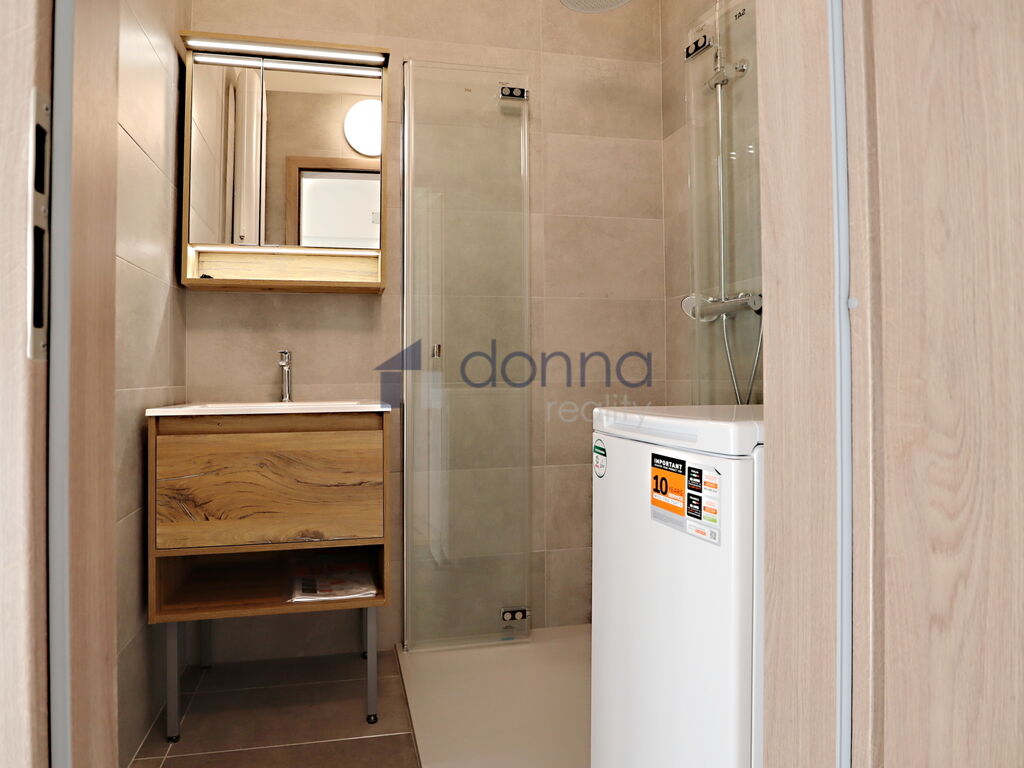 V koupelně se nachází sprchový kout, umyvadlo a je tu i umístěná pračka. Toaleta je samostatná. Podlahové krytiny tvoří parkety, vinyl a dlažba. Centrální dálkové vytápění v bytě. Okna jsou orientovaná na jih a jsou vybavena vnitřními žaluziemi. Součástí bytu je také sklepní kóje o velikosti 1,8 m2 v suterénu budovy.