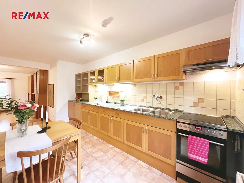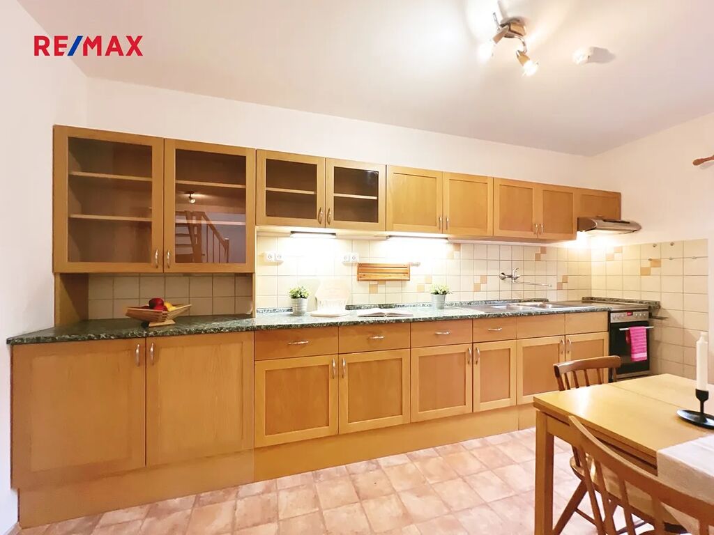 V přízemí se nachází prostorný kuchyňský kout s jídelním stolem a obývací pokoj s krbem z nějž je vstup na zastřešenou terasu s krásným výhledem do zahrady. Dále je zde koupelna, spíž a sklad. V patře najdete tři ložnice šatnu a druhou velkou koupelnu. Součástí domu je ještě garáž a dílna.
