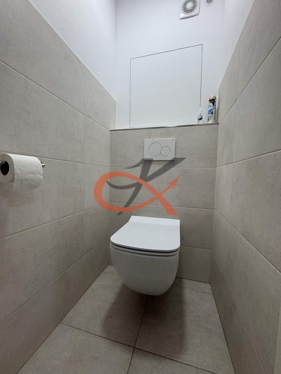 Koupelna je vybavena sprchovým koutem a umyvadlovou skříňkou, WC je samostatné. K dispozici je také komora s pračkou a sušičkou. Velká lodžie poskytuje krásný výhled na Radhošť. K bytu náleží sklepní kóje a možnost využívat společné prostory.