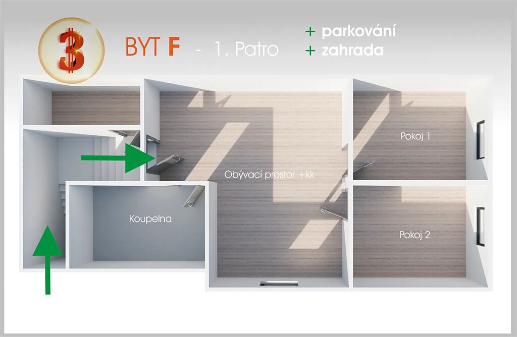 S užitnou plochou 66 m² dále doplněnou i vlastní plnohodnotnou zahradou přímo za dvorem či parkováním v tomto bezpečně uzavřeném dvoře poskytuje tento byt dostatek celkového prostoru a zázemí pro zcela komfortní životní styl. K bytu pak náleží samozřejmě také ještě další doplňující úložný prostor. Je zkrátka navržen tak, aby splňoval všechny současné standardy, a to nejen moderního ale také opravdu spokojeného bydlení. V projektu je tento byt pak navíc výjimečný svou orientací do přilehlých zahrad.