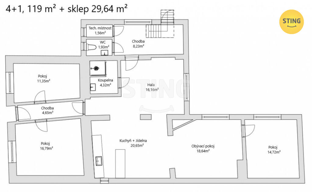 dispozice: 4 pokoje