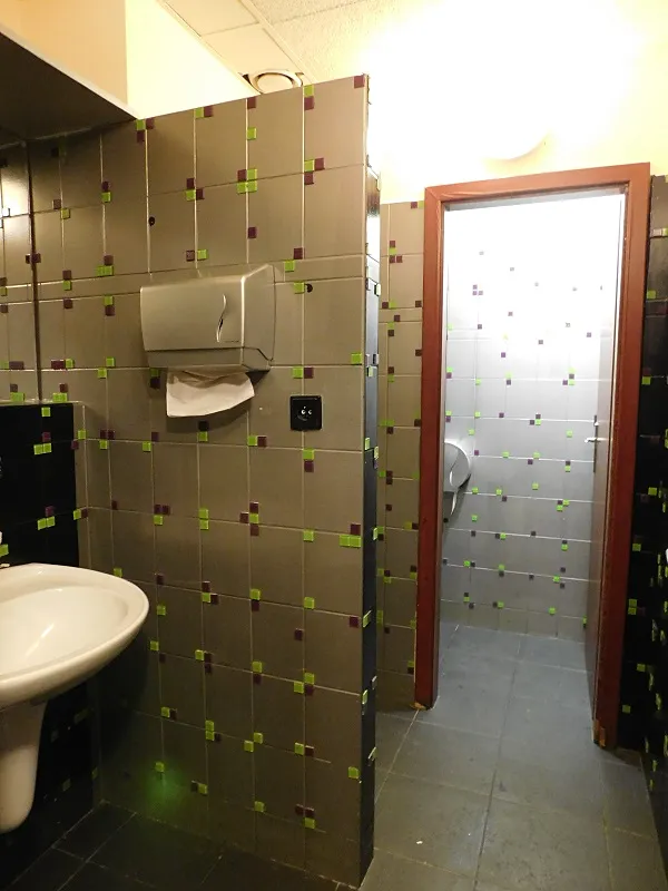hlavní místnost s barovým pultem a posezením pro hosty, oddělená kuchyně se zařízením, toalety pro personál i hosty.