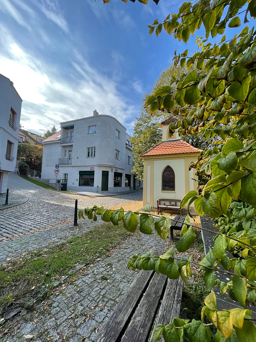 Byt o dispozici 5+kk s podlahovou plochou 193,5 m², terasou 18 m² a lodžií 2,2m² se nachází v prestižní rezidenční lokalitě Staré Střešovice s nezapomenutelnými výhledy na Ořechovku a Hanspalku. Nemovitost je situována ve vilovém domě puristického stylu z roku 1932, který prošel kompletní rekonstrukcí a zároveň architektonicky citlivou přístavbou. Přístavba doslova levituje na subtilních ocelových sloupech a ponechává tak pod sebou volný zastřešený dvůr. I přes rozšíření o přístavbu je zachována kategorie rodinného domu se 3 prostornými byty. V patru je situována komerční jednotka a kancelář, pod celou přístavbou je otevřená garáž s pakováním pro 5 vozů. Tečkou za snažením je obnovení provozu pekárny se vstupem v nároží a restaurovanými výlohami. Restaurováno bylo také domovní teracové schodiště s podestami a sokly ze slinuté prvorepublikové dlažby, trubkové zábradlí s dřevěným madlem.