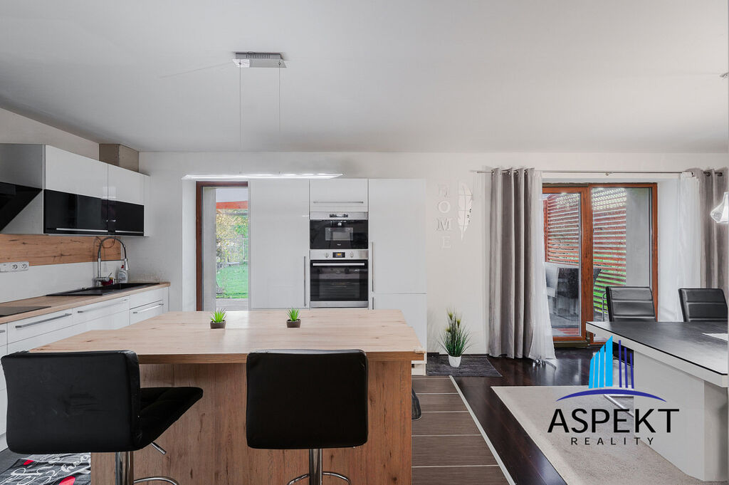Dále se v domě nachází dvougaráž, která je přístupná přes technickou místnost a nabízí dostatek prostoru pro parkování. Nad garáží je umístěna herní místnost, kde je možné si zahrát kulečník nebo šipky, případně ji využít pro fitness aktivity. Do této místnosti je přivedena elektřina a voda pro nový kuchyňský koutek, což umožňuje její přestavbu na samostatnou bytovou jednotku.