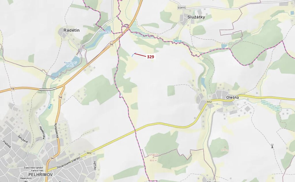 Ostatní plocha o výměře 414 m2, parcelní číslo 329, podíl 1/1, katastrální území Olešná u Pelhřimova, obec Olešná, obec s rozšířenou působností Pelhřimov, okres Pelhřimov, Kraj Vysočina.