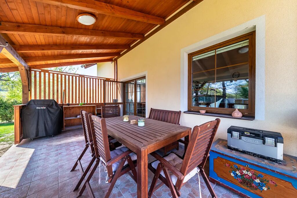 Dům nabízí dostatek prostoru pro pohodlné bydlení aktivní rodině. Tatínek má k dispozici dostatečné parkování, garáž a kotelnu. Maminka určitě ocení pohled z kuchyně na zeleninovou a ovocnou zahradu, kde si může pěstovat bylinky. Pro celou rodinu bude atraktivní a plně využívaná pergola, přístupná z obývacího pokoje a skrytý odpočinkový kout s udírnou.
