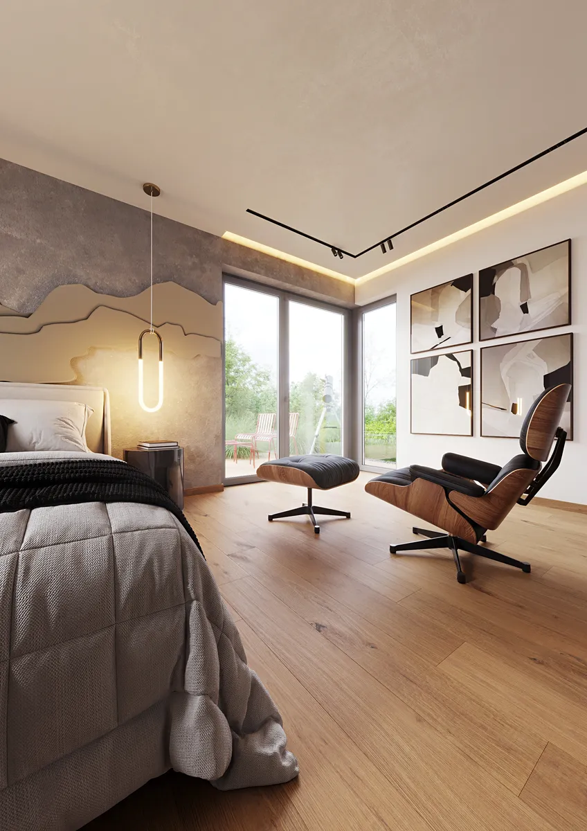 V přízemí vás uvítá prostorný obývací pokoj propojený s kuchyní, odkud se vychází na terasu i do atria. Samostatná pracovna, koupelna, technická místnost a garáž pro dva vozy zajišťují praktičnost domu. V patře pak najdete dvě dětské ložnice, hlavní ložnici se šatnou, druhou pracovnu a dvě koupelny, každý člen rodiny tak má své soukromí.