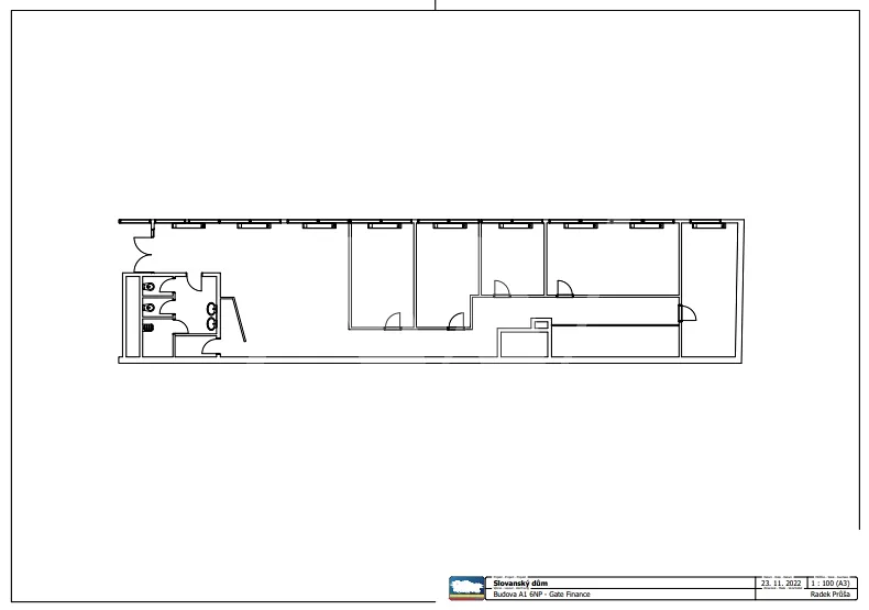 • dispozice prostory zahrnuje 5 samostatných kanceláří, vstupní recepci a sklad