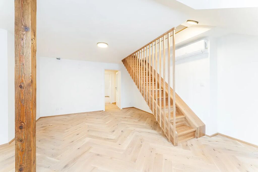Moderně zrekonstruovaný mezonetový byt 4+kk se nachází v 6. podlaží cihlového bytového domu s výtahem na rozhraní ulic Žitomírská a Oblouková, pár kroků od oblíbeného parku Grébovka. Dům prošel revitalizací společných prostor a fasády.