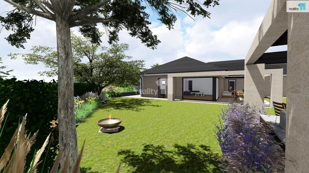 Venkovní část nabídne dokonalé zázemí pro odpočinek i zábavu: prostornou terasu se zahradou obklopenou vzrostlými stromy, luxusní pergolu s venkovní kuchyní, bioklimatickou pergolu pro optimální stínění a komfort, saunu, vířivku a vyhřívaný bazén o rozměrech 4 × 8 metrů. Součástí zahrady je také automatická závlaha a robotická sekačka, která se postará o perfektně udržovaný trávník bez vaší námahy.
