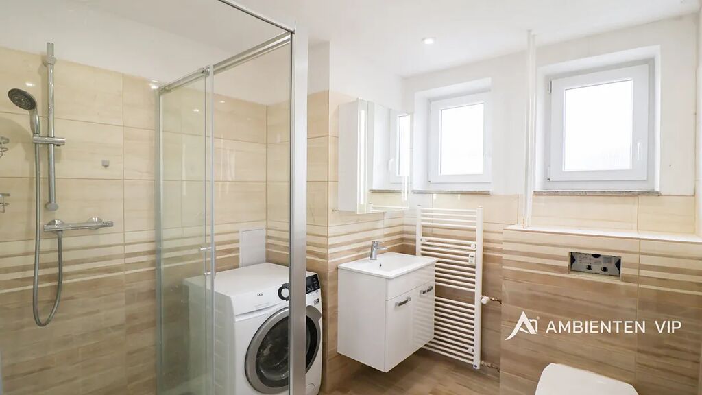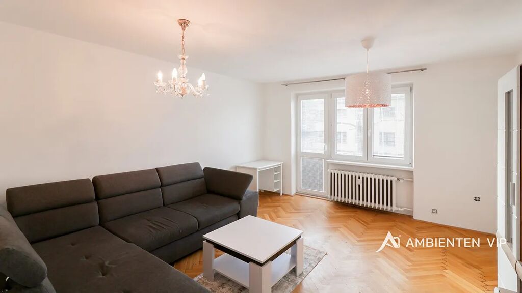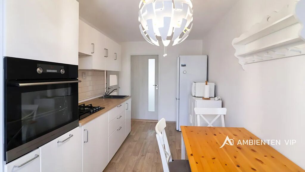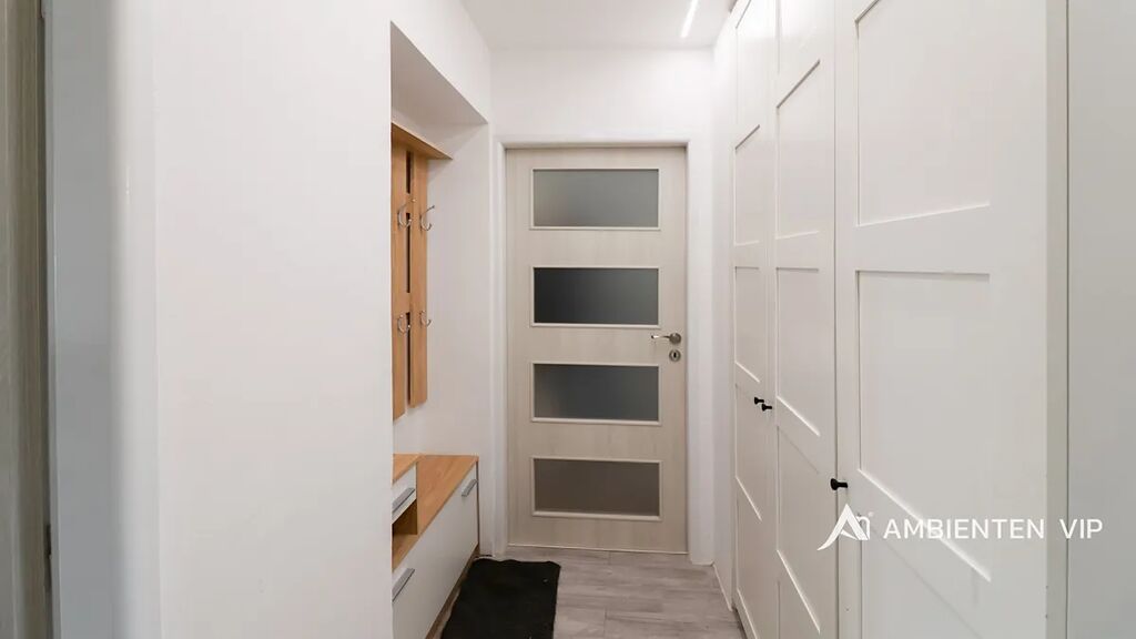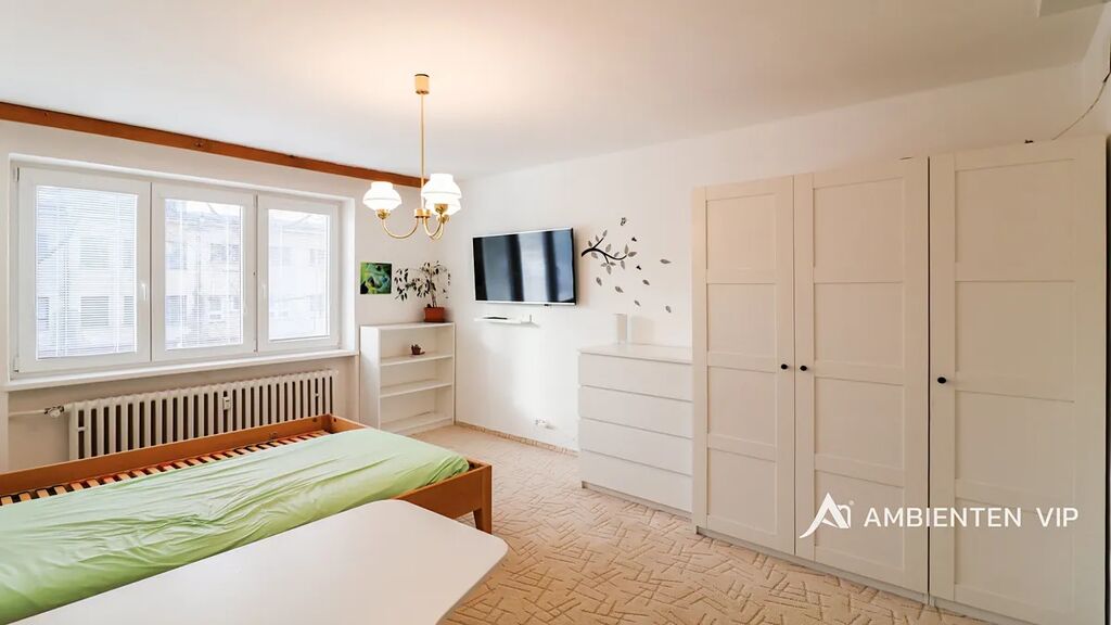 Vybavený byt se nachází ve zvýšeném 2. nadzemním podlaží cihlového domu po revitalizaci z roku 2025. V předsíni bytu se nachází velká vestavěná šatní skříň. Z předsíně je samostatný vstup do obývacího pokoje s novou rozkládací sedačkou, pracovním stolem a TV stěnou, disponující úložným prostorem. Koupelna je vybavena pračkou AEG. Kuchyně je vybavena lednicí, plynovým sporákem, troubou a myčkou. V ložnici se nachází velká manželská postel 160x200 vč. matrací. Dále se zde nachází šatní skříň, pracovní stůl, pracovní židle a smart TV.