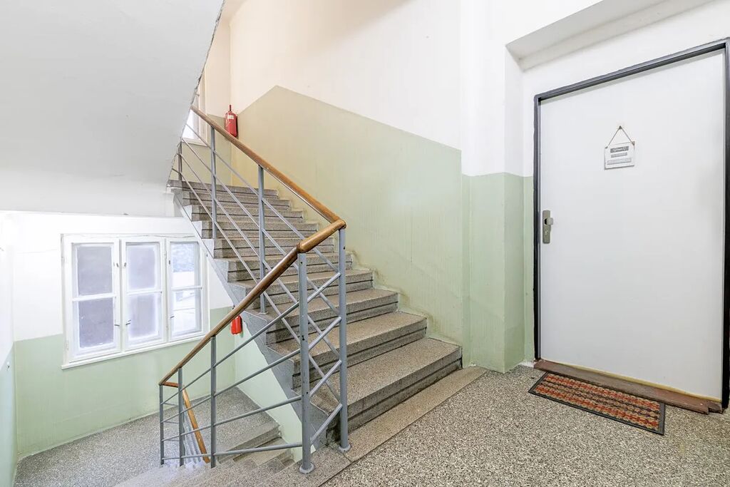 Bytová jednotka je umístěna ve třetím patře cihlového domu. Obdivovatelé starých činžovních domů, kteří jsou smířeni s tím, že zde nenajdou výtah, ocení krásné dobové schodiště a zábradlí. Tyto jedinečné prvky dávají bydlení neopakovatelnou atmosféru.