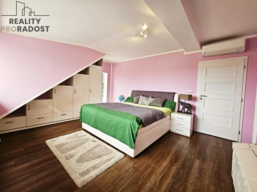 Vrchní patro domu je přístupné po schodišti z obývacího pokoje. Nachází se zde dvě samostatné ložnice, zimní zahrada s krásným výhledem, kterou je možné využít jako další ložnici a prostor na druhou koupelnu, kterou si zájemce může dotvořit dle vlastních představ. V současné době je zde funkční závěsné WC, kombinovaný kotel a přípojka na pračku.