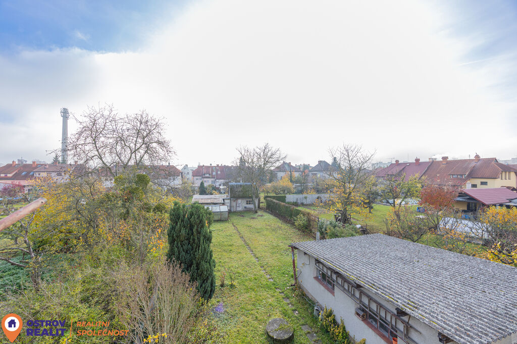 V podkroví domu se nachází tři samostatné pokoje a koupelna. Celý prostor je v původním, ale zachovalém stavu, a nabízí tak skvělou příležitost k rekonstrukci. Z největšího pokoje je vstup na balkon, odkud se otevírá příjemný výhled do zahrady a na okolí Uničova.