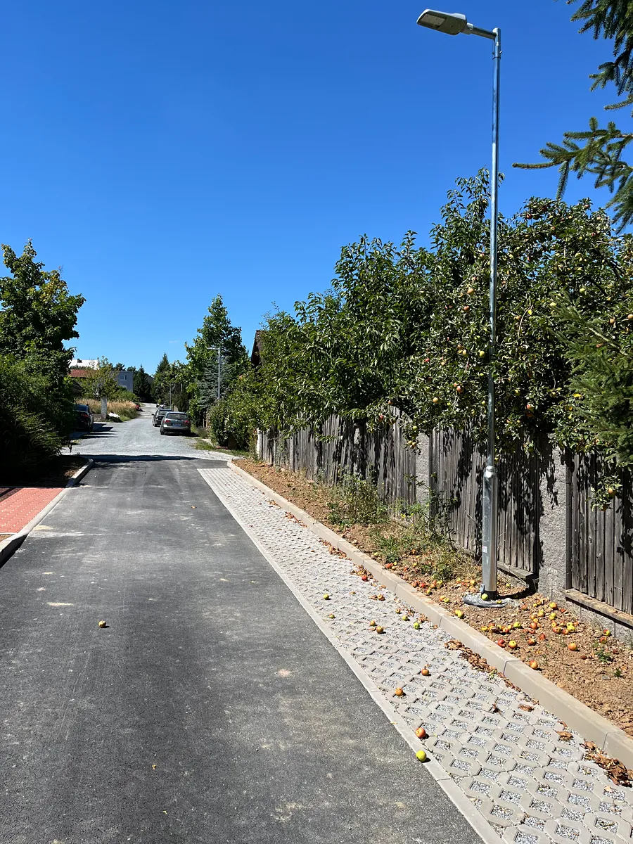 Všechny pozemky jsou nově kompletně zasíťované - obecní vodovod, obecní kanalizace a elektro přípojka (přípojky jsou vytažené přímo na pozemky - bez další investice). Mezi pozemky je nová asfaltová komunikace s veřejným osvětlením. Komunikace se budou převádět do vlastnictví obce.