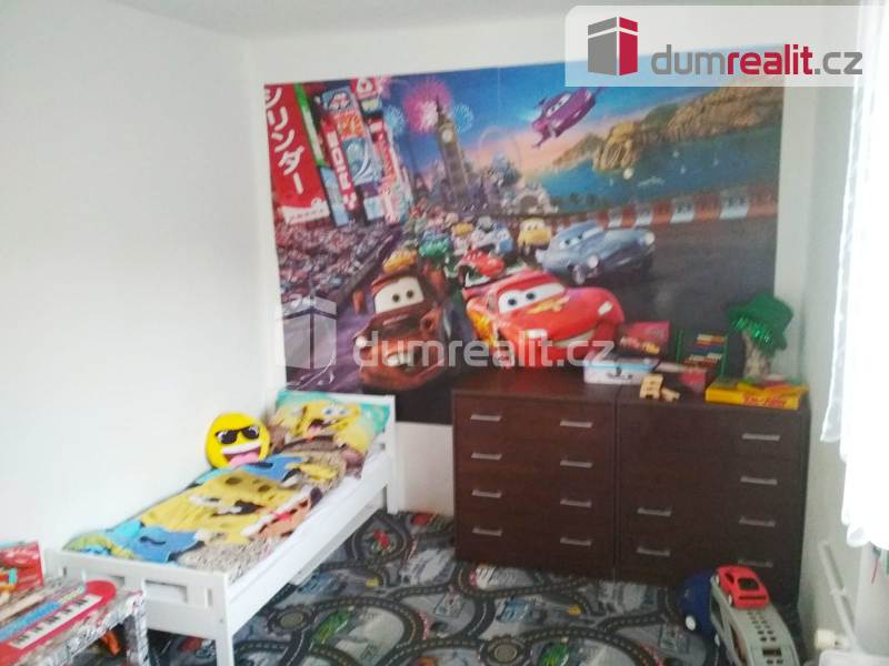 Ložnice nabízí manželskou postel a velkou šatní skříň, dětský pokoj je vybaven postelí, skříní a prádelníkem.