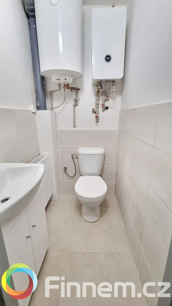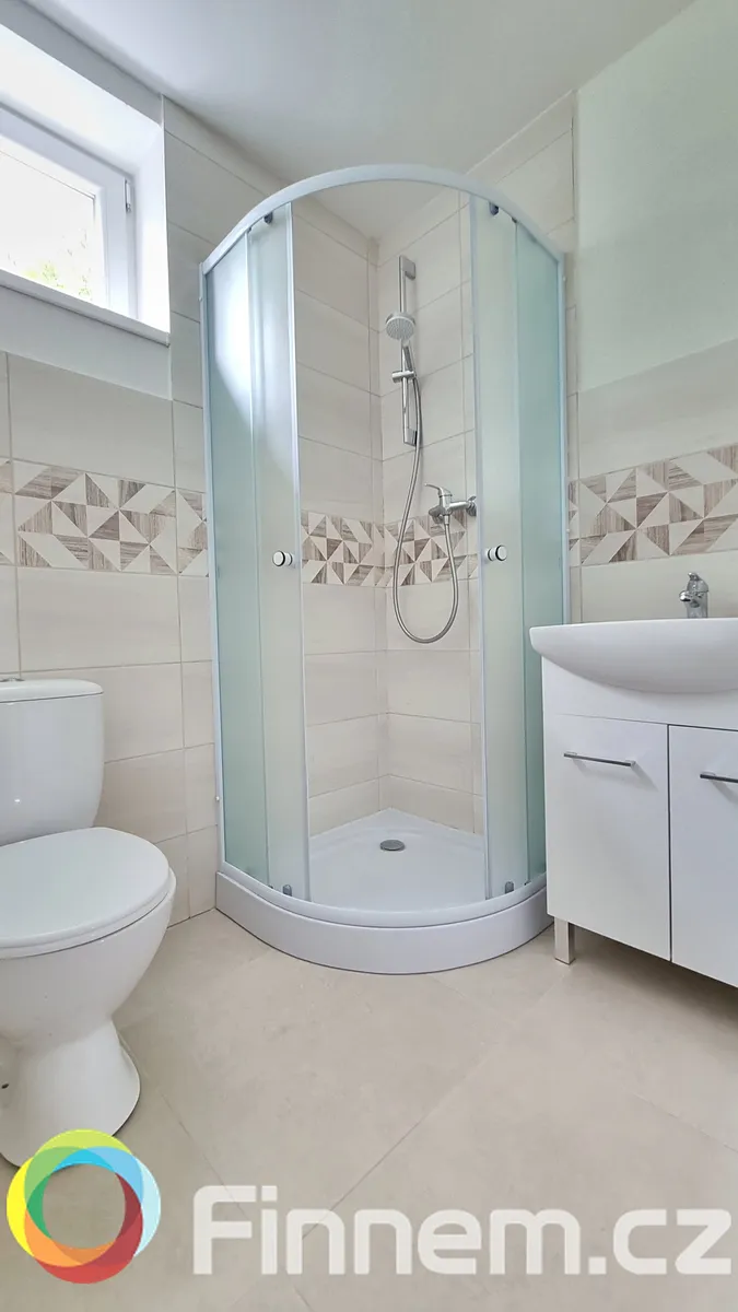 Velkým benefitem této haly je nově zrekonstruovaná jednotka 3+kk, 65m2, umístěná v patře nad skladem. Okna z chodby této jednotky směřují přímo do haly. Okna z místností pak ven do zeleně. Jedná se tedy o příjemné světlé prostory. Jednotka je vybavena kuchyňskou linkou, koupelnou s toaletou a další samostatnou toaletou. Je vytápěna vlastním kotlem s rozvodem do radiátorů.