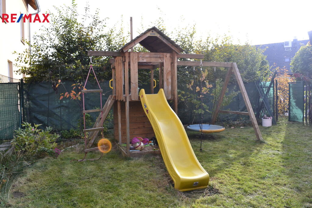 Kompletně zařízený byt, jeho dominantou je prostorný obývací pokoj s velkou rohovou sedací soupravou. Dva pokoje, kdy větší je vybavený jako ložnice a druhý dětský pokoj kde má vedle lůžka i pracovní stůl. Kuchyňská linka je plně vybavena spotřebiči včetně myčky na nádobí, mikrovlnné trouby a pračky. Dále je v bytě koupelna s vanou, toaleta a komora. Na zahradě je terasa k posezení, dětské hřiště a domek na nářadí.