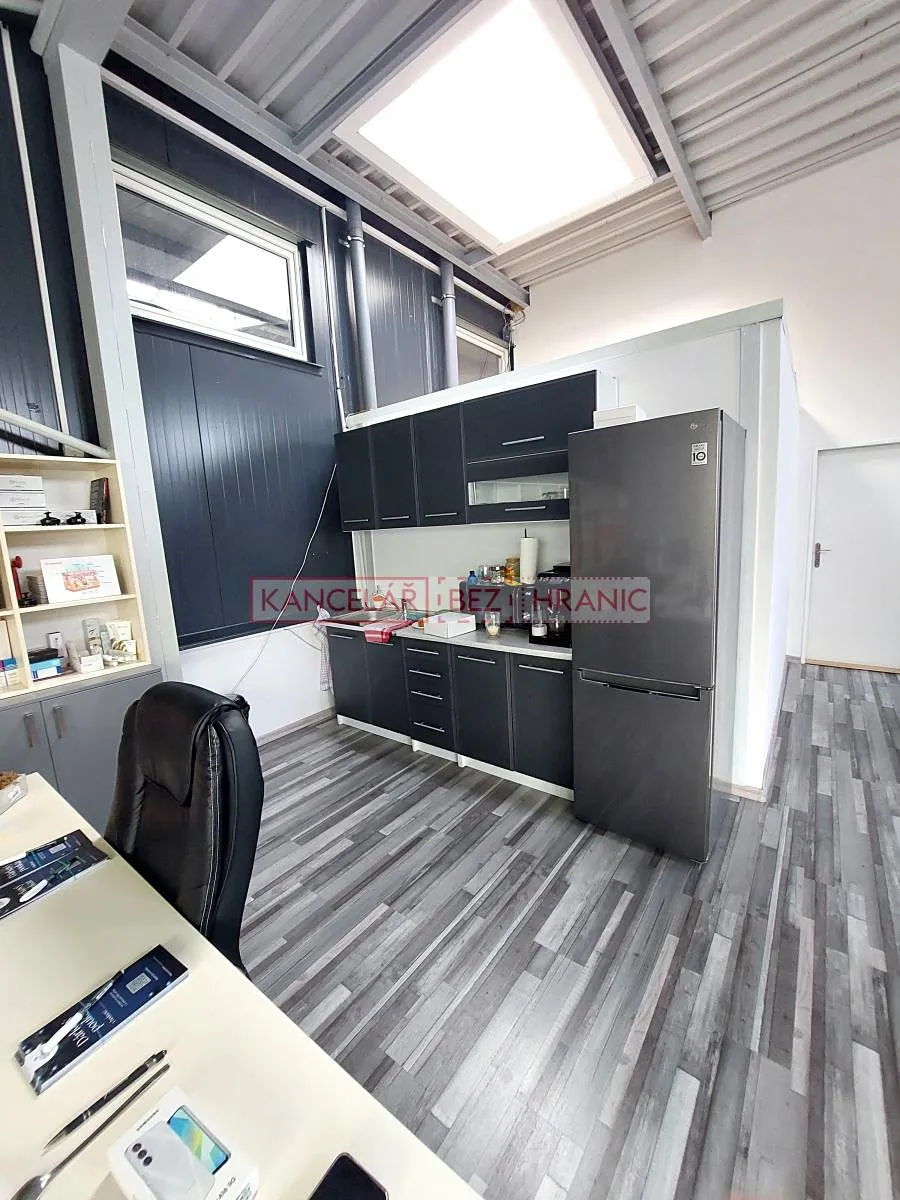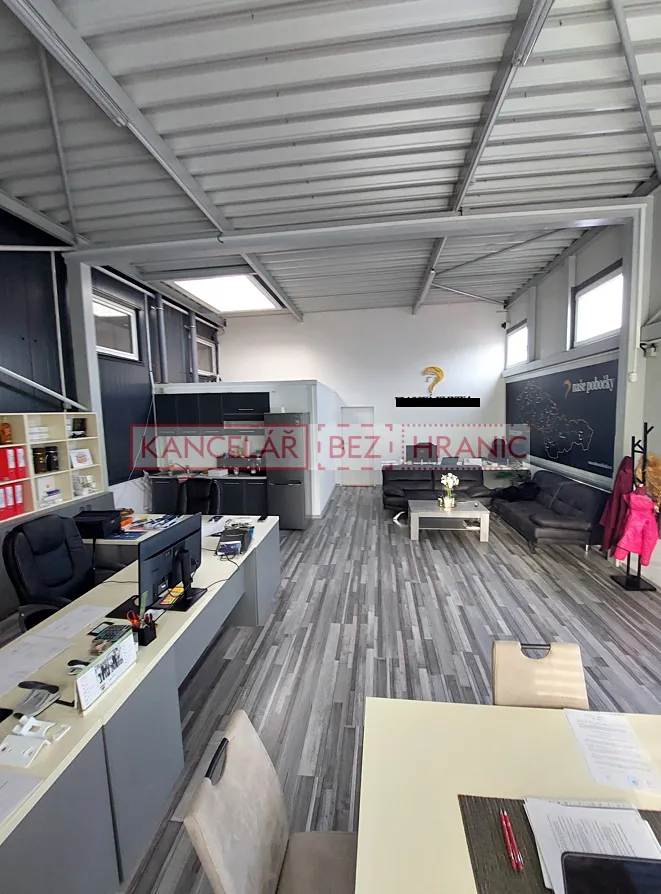 V administrativní části je zázemí pro obchodníky,prodejce,účetní-disponuje také kuchyňským koutem a velkou prosklenou vitrínou.