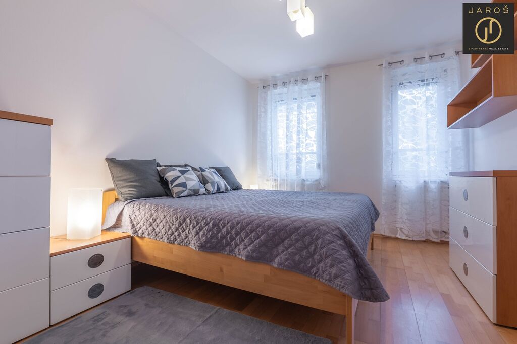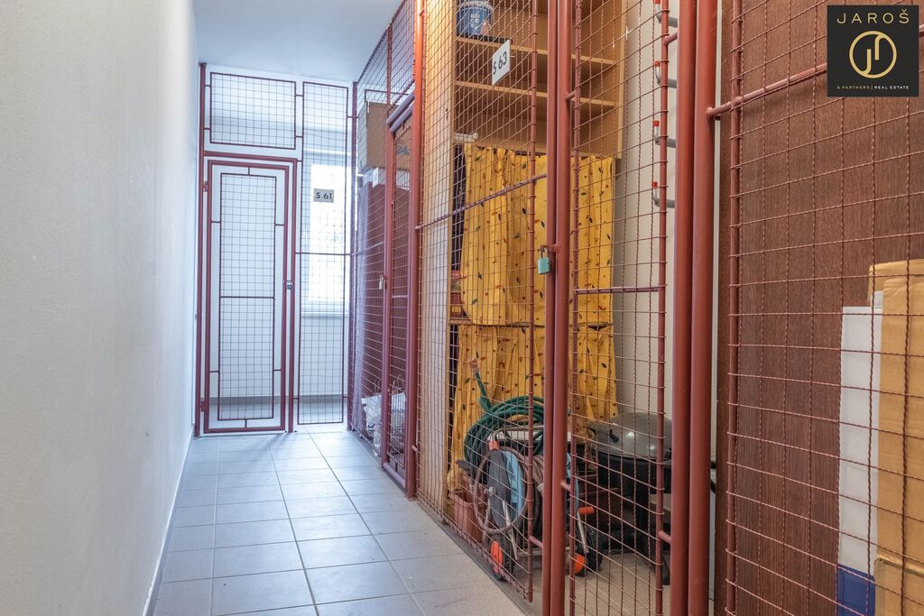 K bytu náleží parkovací stání v podzemní garáži, sklepní kóje na patře a praktická spižírna přímo v bytě. Byt nabízí velké množství úložných prostor.