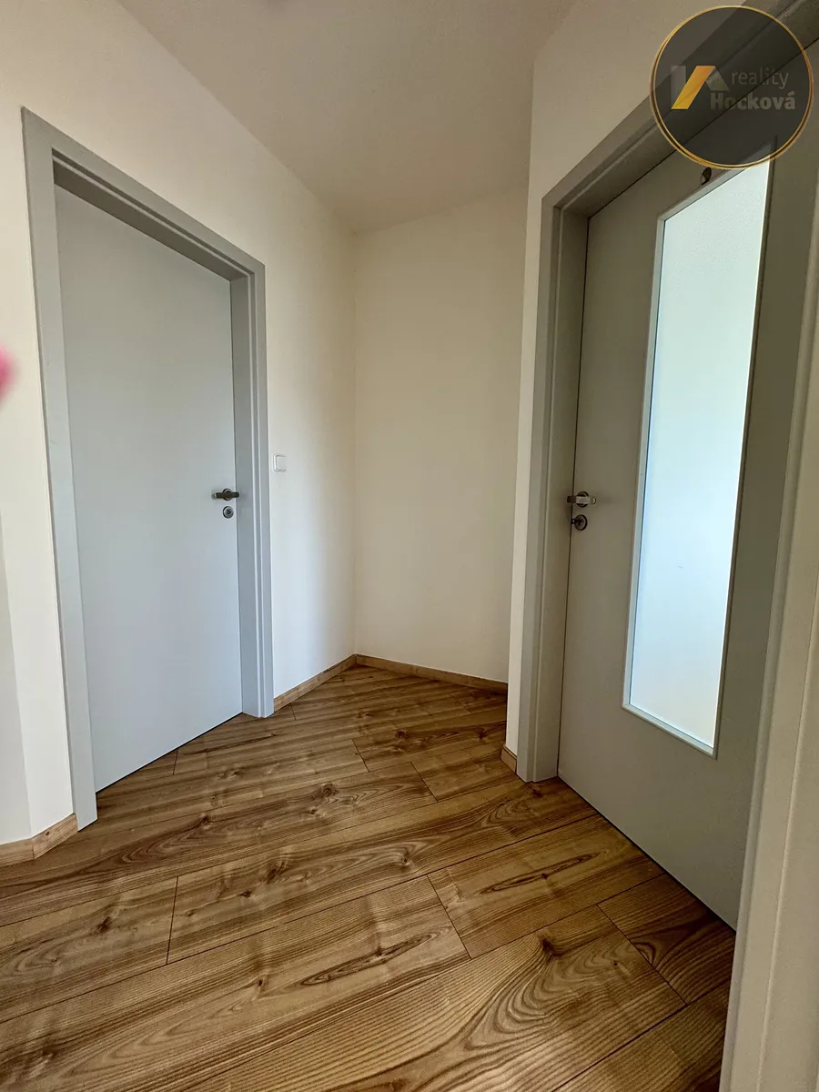prostorná hala se vstupem do světlého obývacího pokoje s kuchyňským koutem, prostornou ložnicí, WC a koupelnou