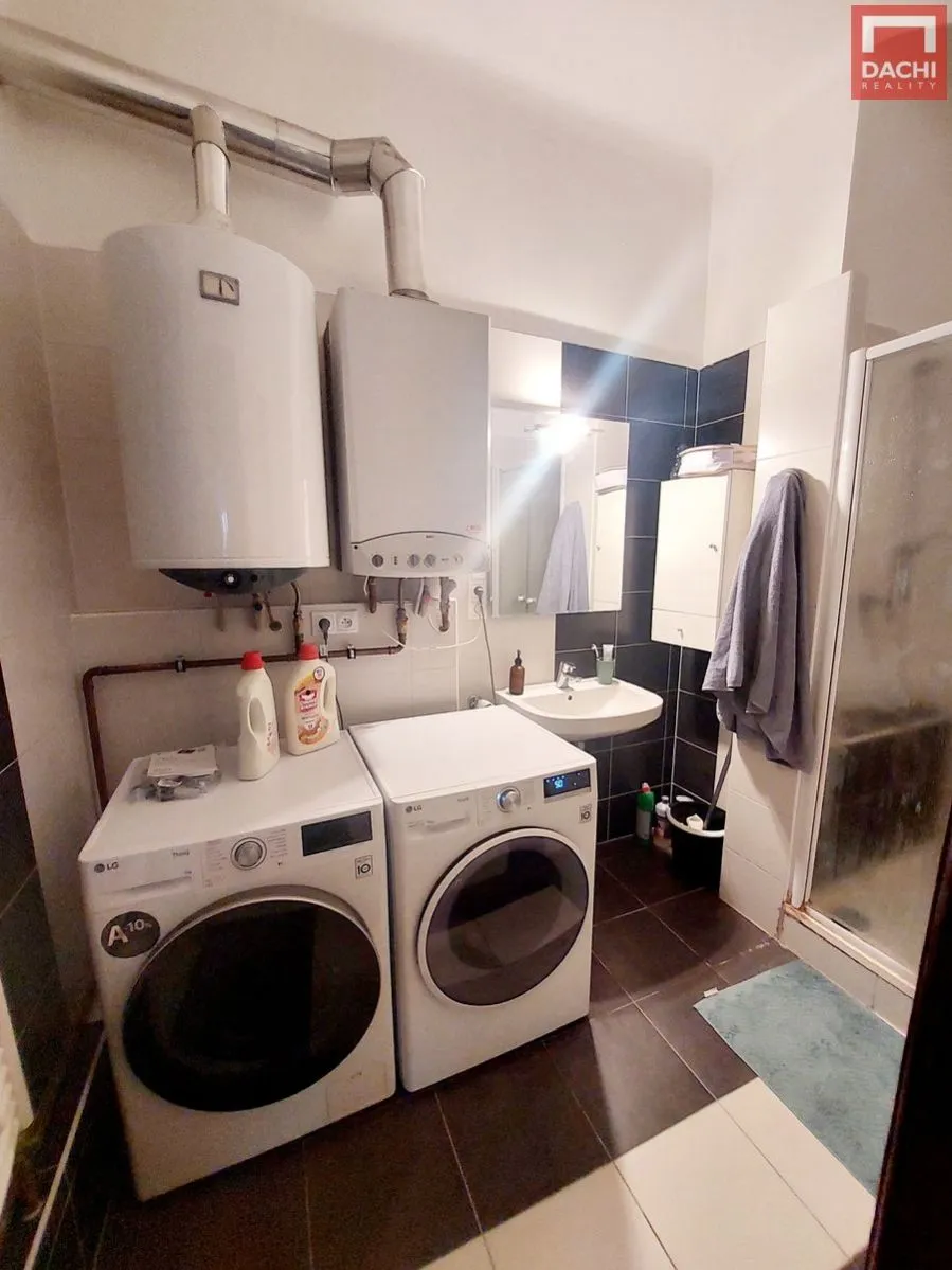 Kuchyně včetně kuch. linky, sporáku, trouby, lednice s mrazákem a s jídelnou. V koupelně k dispozici pračka i sušička.