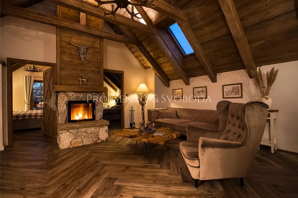 - horní apartmán: krb Hoxter na dřevo