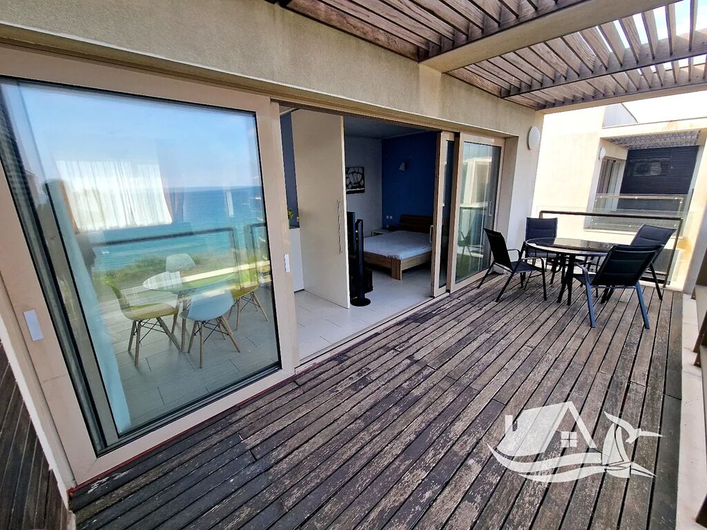 velká terasa s přístupem z obývacího pokoje i ložnice, odkud se otevírá fascinující frontální pohled na moře