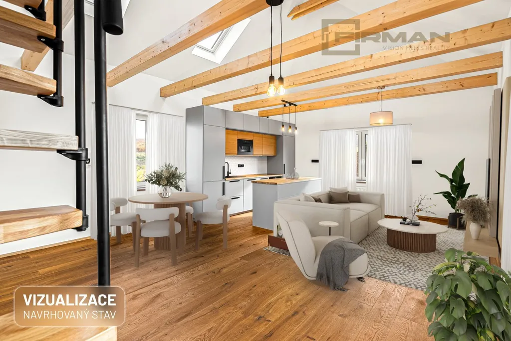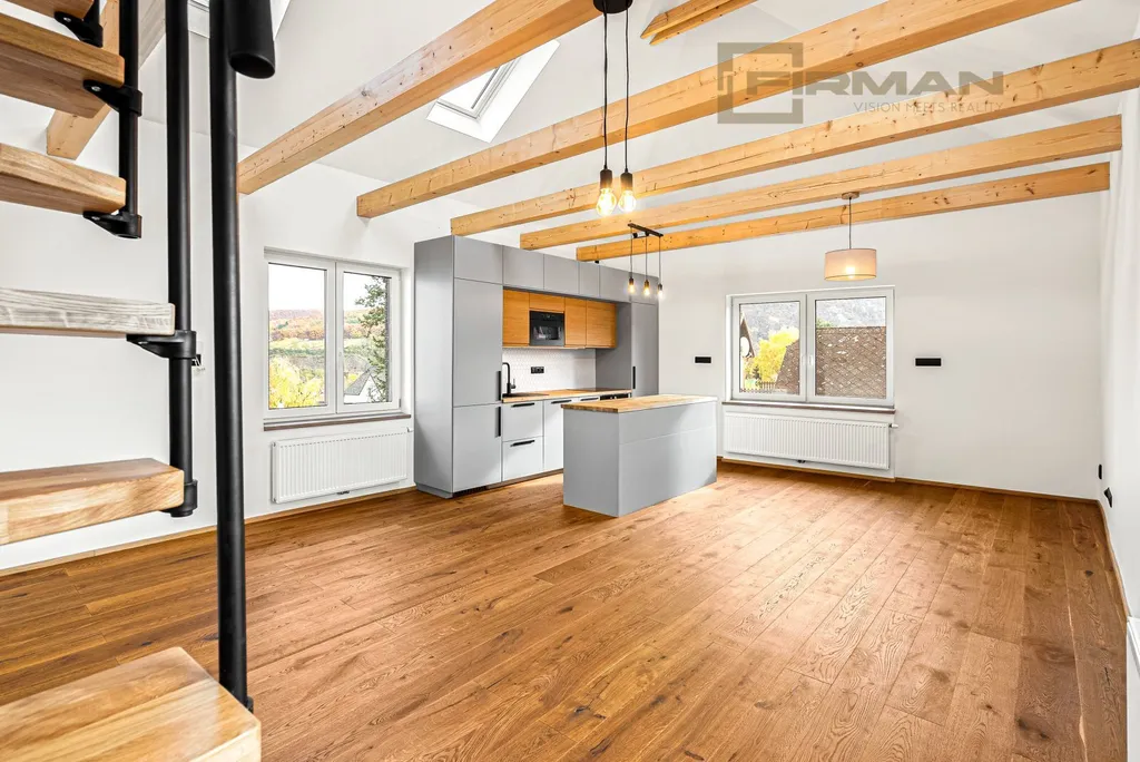 Hledáte něco jedinečného? Představte si místo, kde najdete komfort nadstandarního prostoru ve spojení s prémiovými materiály. Tento byt 3+kk o celkové ploše 110m2, do níž je započítán velkolepý obývací pokoj s moderní kuchyní, ložnice, pracovna a podkrovní místnost, kde je snížená výška stropu, skvěle však poslouží k odpočinku, hraní, či k uskladnění věcí, je součástí nově zrekonstruovaného domu o dvou bytových jednotkách na Zbraslavi.