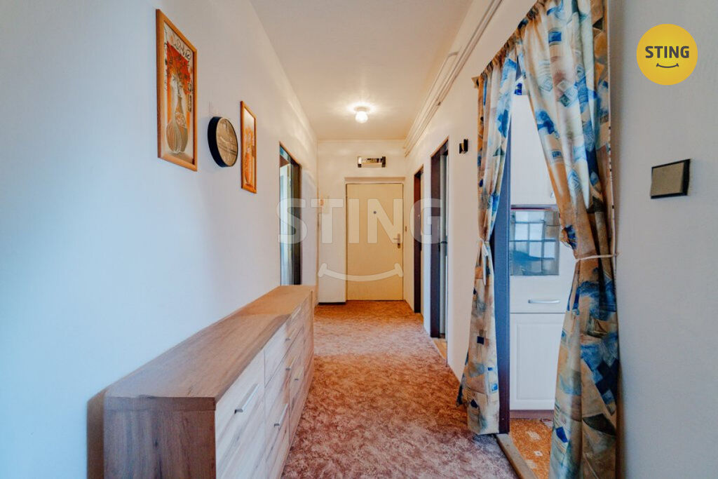 Byt, který vám nabízím, disponuje třemi pokoji plus kuchyň, koupelna a samostatné wc. Tyto pokoje nejsou průchozí, což nabízí samozřejmě soukromí. Kuchyň má novou kuchyňskou linku, prostor pro lednici, vestavěnou spíž, jídelní kout i prostor pro možného hosta k přespání.