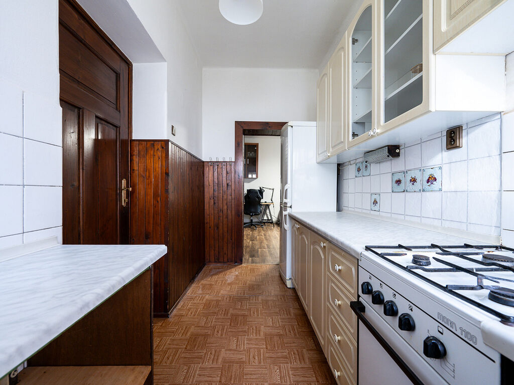 Prostor v patře tvoří kuchyně, 2 průchozí pokoje, koupelna a WC. Tato část domu je v původním stavu, ale taktéž s možností poskytnutí bydlení bez nutnosti větších zásahů.