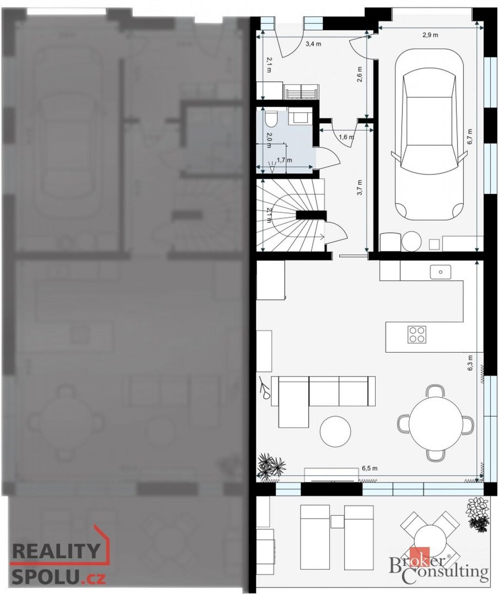 V dosahu Mladé Boleslavi a Poděbrad nabízím samostatnou polovinu domu, každá s podlahovou plochou 160m² včetně garáže, se vstupem přímo do domu, vždy s pozemkem o celkové rozloze 331m².