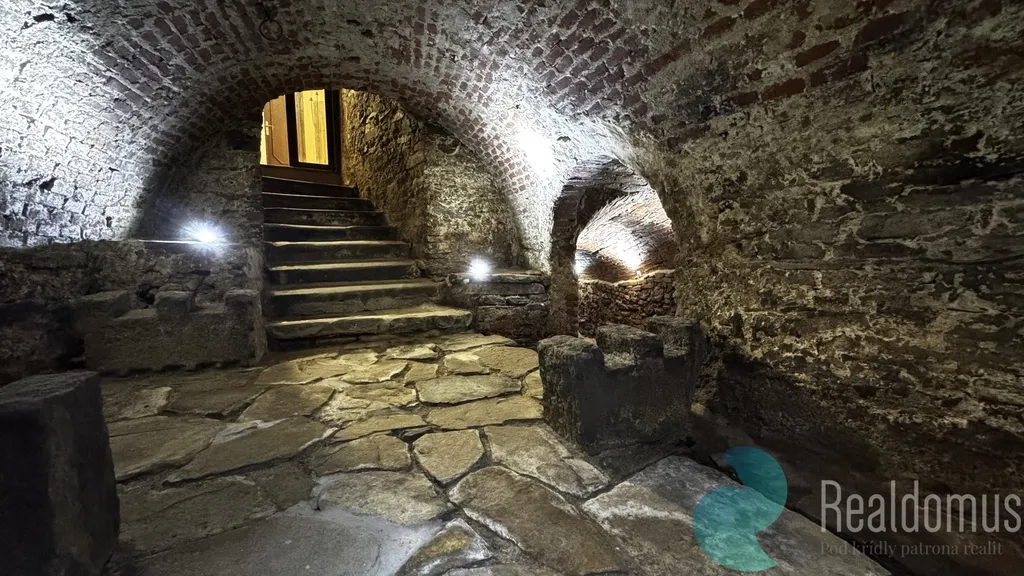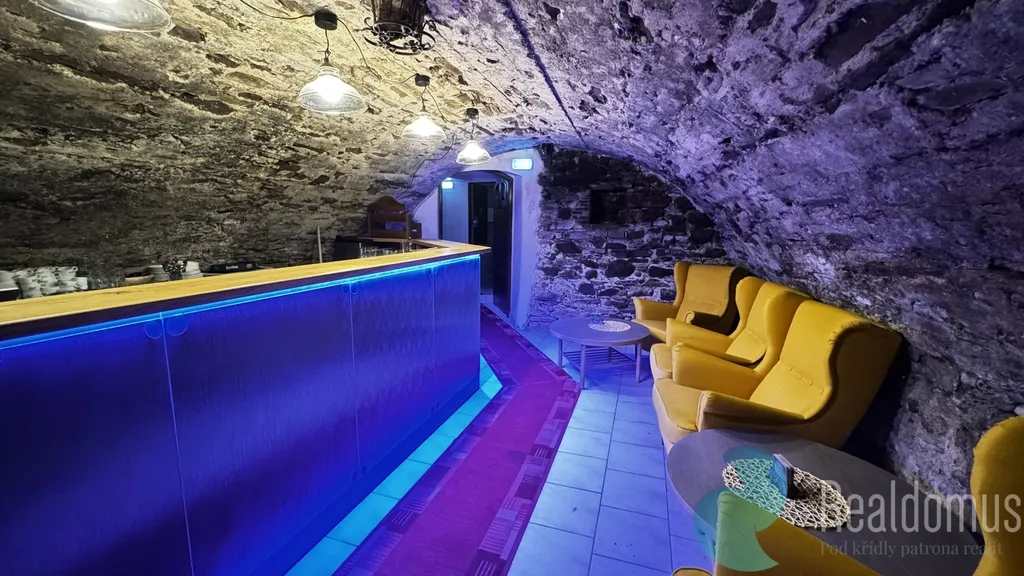 Nabízíme Vám vinárnu/bar ve sklepích jedinečného domu s bohatou historií. Dům sloužil ve středověku k uskladnění a překládání soli. V prostorách vyvěrá pramen pitné vody, který prochází sklepením v upravené kamenné strouze a tvoří tak originální interiérový prvek, který není k vidění nikde jinde.