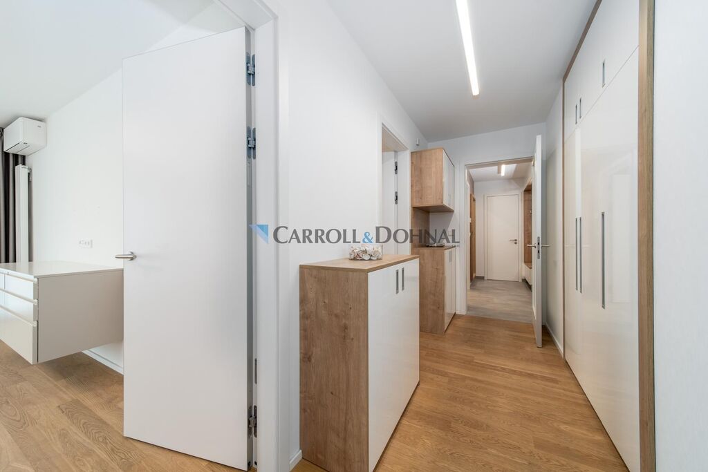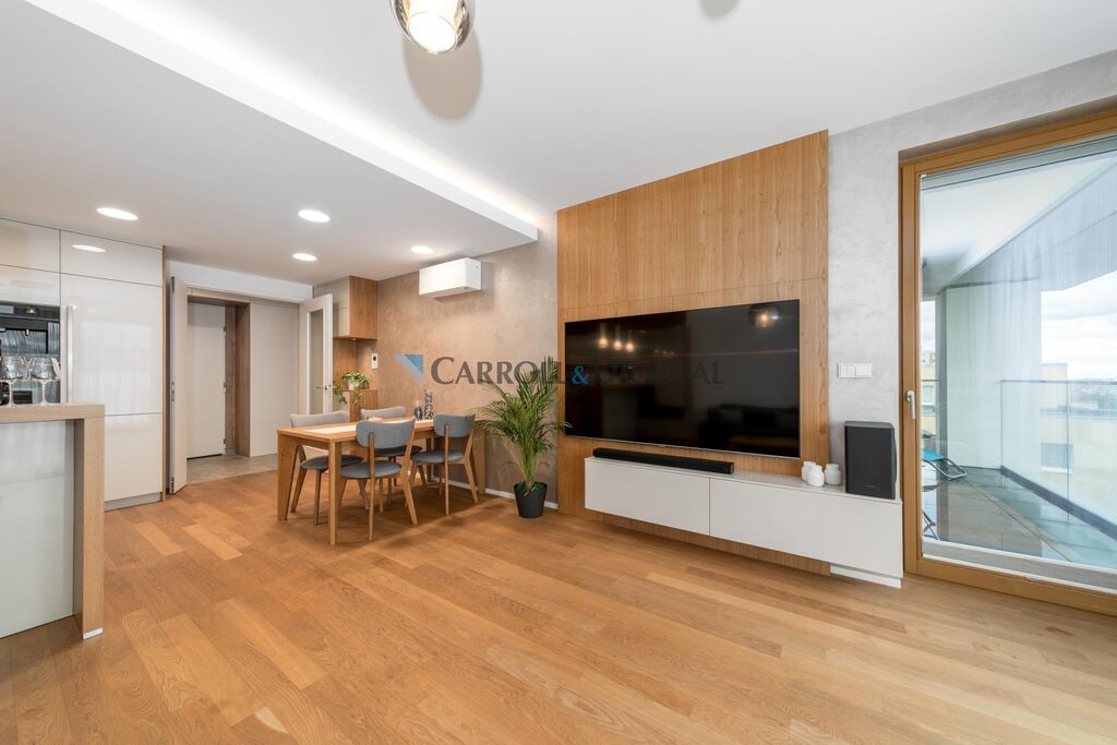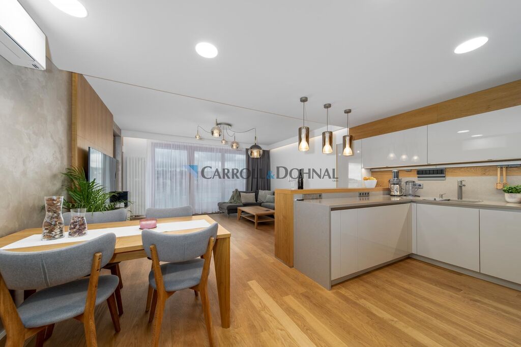 Tento výjimečný byt propojuje moderní eleganci, luxusní materiály a dokonalý komfort. Představte si rána, kdy si na prostorné terase vychutnáváte šálek kávy, večer s přáteli sklenku vína a před Vámi se rozprostírá jedinečná scenérie Prahy.