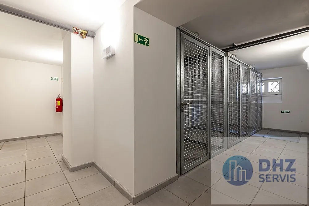 Dispozice bytu nabízí novému nájemci vstupní chodbu, obývací pokoj s vybavenou kuchyní, dvě ložnice, koupelnu se sprchovým koutem, umyvadlem, toaletou a přípravou pro pračku/sušičku, dále pak oddělenou toaletu a malou komoru. V 1.PP je k dispozici sklepní kóje.