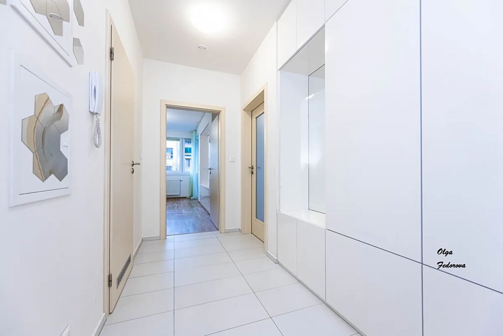 Nabízíme k dlouhodobému pronájmu světlý byt 2+kk s lodžií, o velikosti 58 m², který se nachází ve 2. nadzemním podlaží moderního domu z roku 2017 v klidné části Prahy 5 – Jinonice, nedaleko Německé školy v Praze.