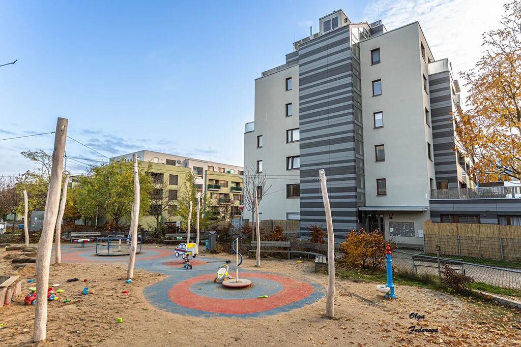 Jen pár kroků od domu se rozkládá oblíbený park Na Vidouli, ideální místo pro procházky, běh nebo relax v zeleni.