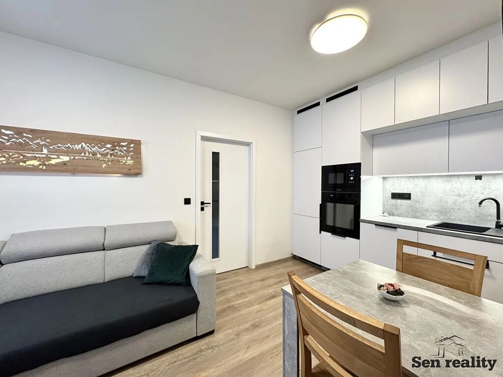 Dispozice bytu tvoří prosvětlený obývací pokoj s kuchyňským koutem vyráběným na míru. Kuchyňský kout je vybaven vestavěnou lednicí a mrazákem, vestavěnou myčkou, vestavěnou horkovzdušnou a mikrovlnnou troubou, indukční varnou deskou s odsáváním, ložnice s vestavěnou skříní a designovým osvětlením, koupelna se sprchovým koutem a elektrickým koupelnovým radiátorem, WC a chodba, ze které je vstup do lodžie o výměře 1,86 m2. K bytu náleží sklep o výměře 3 m2 v suterénu domu. Byt je situován na severovýchod.