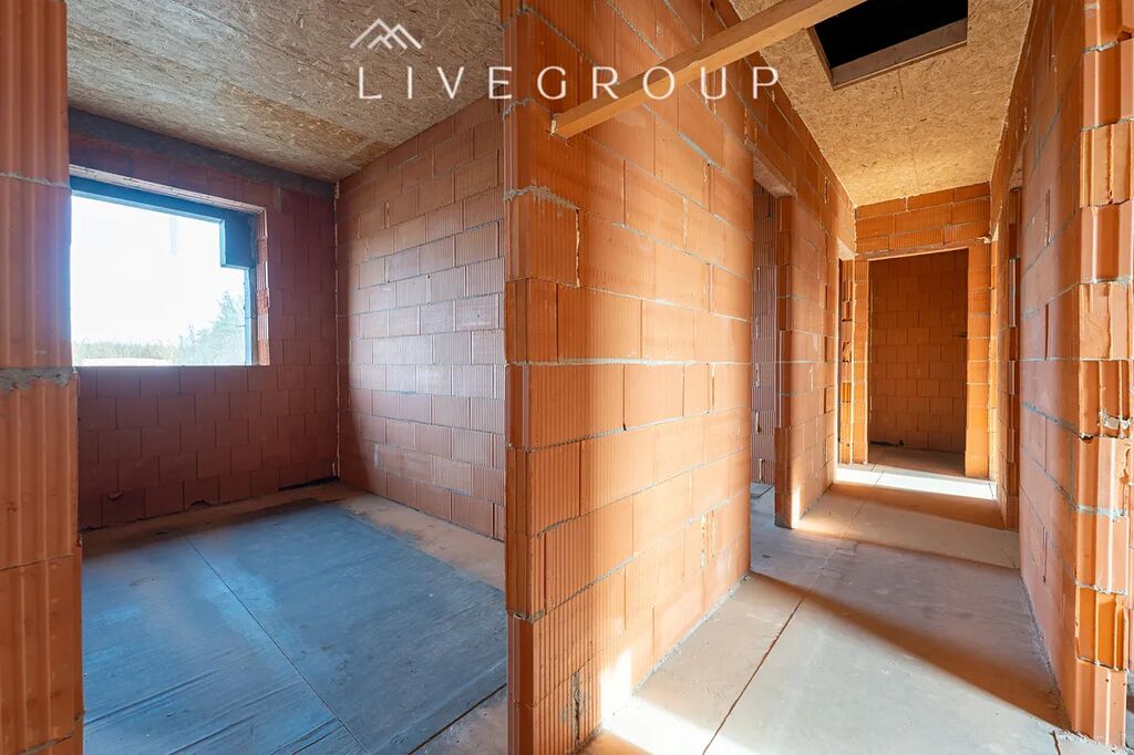 V domě se nachází obývací pokoj s kuchyní (34,6m²) a vstupem na zahradu, hlavní ložnice (13), dvě dětské ložnice (10,9 a 10,8), pracovna (11), technická místnost, koupelna s vanou a 2 toalety. Parkování je zajištěno v garáži pro dva vozy i před domem.