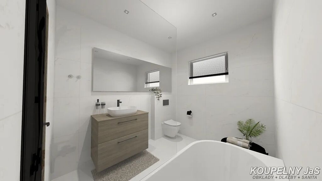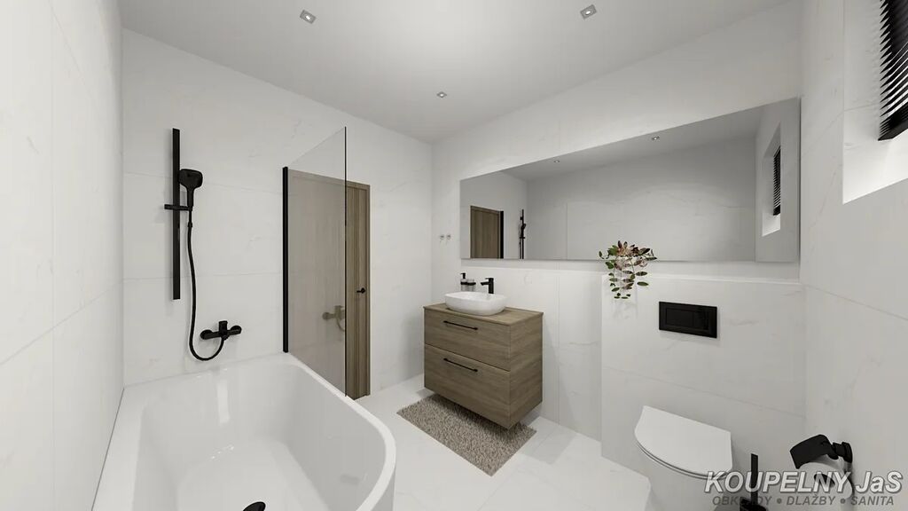 • Dvě koupelny, šatna v hlavní ložnici, výklenky pro vestavěné skříně