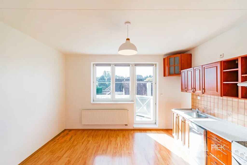 Obývací pokoj s kuchyňskou linkou, která je vybavena myčkou, elektrickým sporákem a digestoří, samostatná ložnice, koupelna s vanou a samostatným WC, velký balkon orientovaný do klidné části, sklepní kóje v suterénu domu.