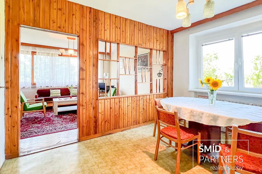 Dům nabízí dvě samostatné bytové jednotky, každou o dispozici 4+1, jednu v přízemí a druhou v patře. Dále je zde prostorný sklep o velikosti přibližně 100 m2, jehož součástí je i garáž.