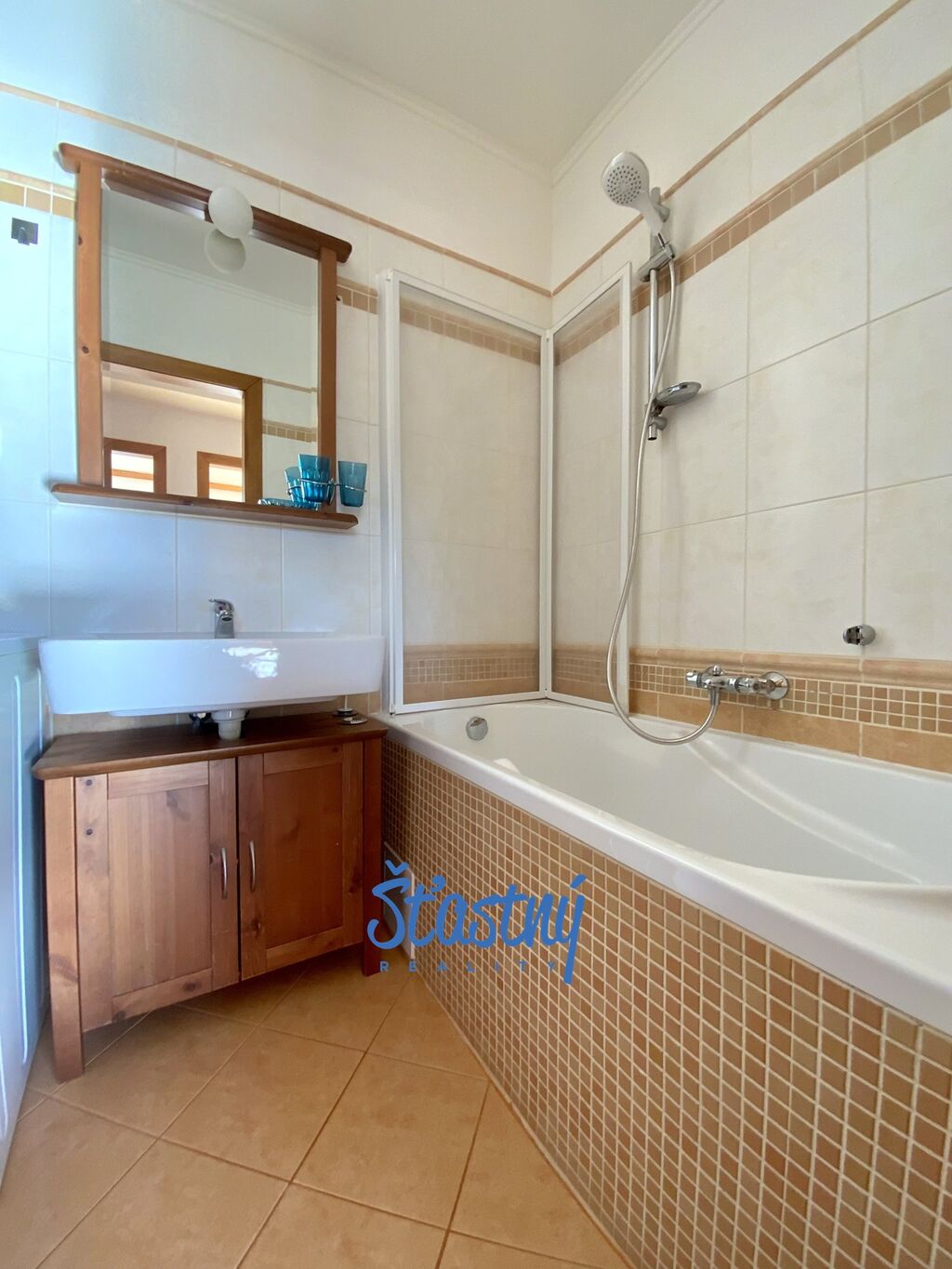 Byt byl zrekonstruovaný – dřevěné dveře, nová okna, na podlahách parkety a dlažba, zděná koupelna s vanou, kde je pračka se sušičkou a samostatné WC.