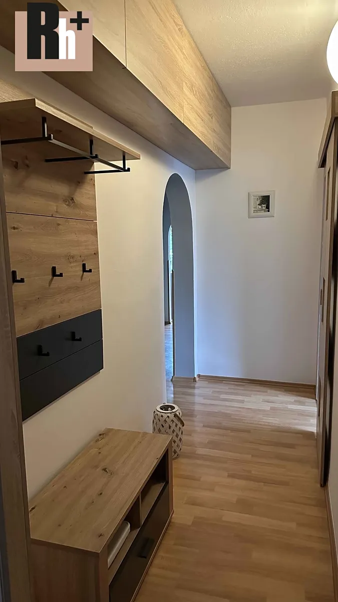 Obývací pokoj je vybaven novou vinylovou podlahou a LED stropním osvětlením, které navozuje příjemnou atmosféru. Ložnice působí útulným dojmem a vchází se z ní na zasklenou lodžii. Kuchyňská linka do tvaru L včetně vestavěných spotřebičů (myčka, mikrovlnná trouba, lednice) je doplněna praktickým kuchyňským stolem.