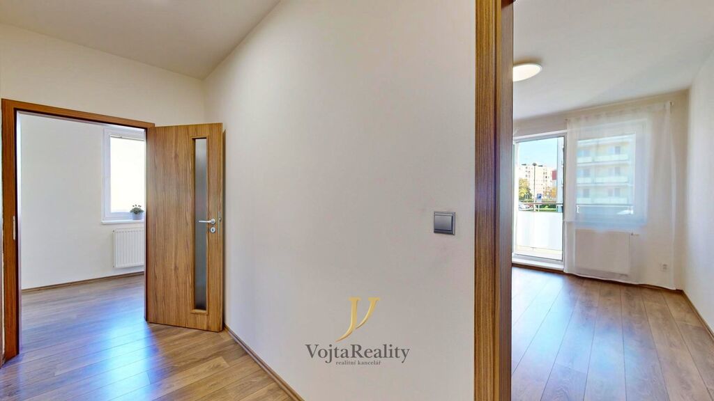 Byt je umístěn v 1. nadzemním podlaží a jeho dispozice zahrnuje prostornou vstupní chodbu, světlý obývací pokoj s kuchyňským koutem, ložnici, koupelnu s vanou a samostatnou toaletu. Z obývacího pokoje i z ložnice je vstup na balkon, což přináší příjemné propojení interiéru s venkovním prostorem. Kuchyň je vybavena sklokeramickou varnou deskou, horkovzdušnou troubou a digestoří. Vytápění i ohřev vody jsou řešeny dálkově. Okna jsou plastová s izolačním dvojsklem. K bytu náleží také dva zděné sklepy, které poskytují dostatek úložného prostoru. V PŘÍPADĚ ZÁJMU JE MOŽNÉ PŘENECHAT PRONÁJEM VENKOVNÍHO PARKOVACÍHO STÁNÍ PŘED BUDOVOU ZA POPLATEK 1 500 KČ/MĚSÍC.