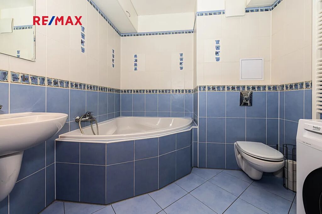 V koupelně se nachází rohová vana, praktické úložné police u stropu, které najdete i v předsíni. Kuchyně je vybavena vestavěnou troubou, varnou deskou, digestoří a myčkou. Na podlahách jsou plovoucí podlahy a dlažba.
