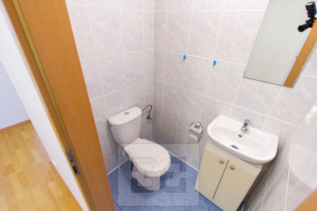 V bytě jsou dvě oddělené ložnici. Podlahy jsou plovoucí; v koupelně a na toaletě je dlažba, plastová eurookna. Koupelna je vybavena velkou rohovou vanou a pračkou. Toaleta je zvlášť a má umyvadlo. V bytě je komora s přípojkou na vodu a odpad, kam lze umístit například sušičku.