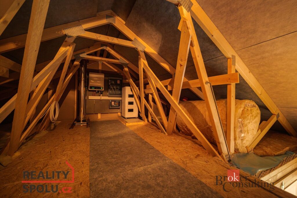 • Půdní úložný prostor – ideální na sezónní věci, tam najdete i fotovoltaiku